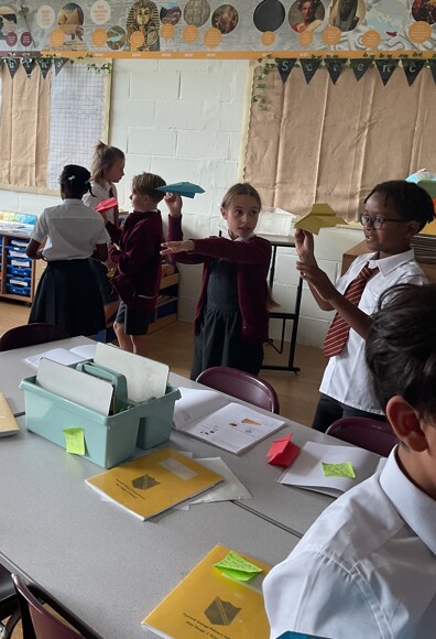 An active half term for year 5’s! This half term year 5 explored air resistance by planning, conducting and evaluating experiments with paper aeroplanes and parachutes. They worked brilliantly in their groups to create parachutes with different surface areas to answer the question “Does the size of a parachute affect the time it takes for it to fall to the ground?”